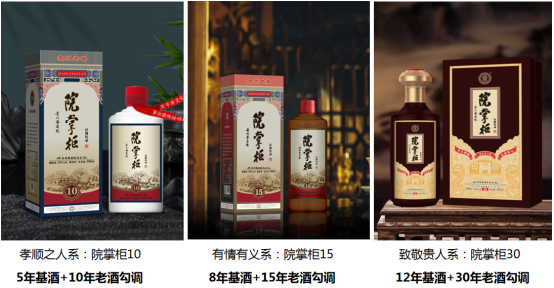 精准定位,覆盖需求。院掌柜推出3款单品,分别是用5年基酒+10年老酒勾调的院掌柜10,用8年基酒+15年老酒勾调的院掌柜15,用12年基酒+30年老酒勾调的院掌柜30。由调酒大师选用不同年份的基酒加老酒精心勾调,涵盖各类酱酒消费群体,满足消费需求。