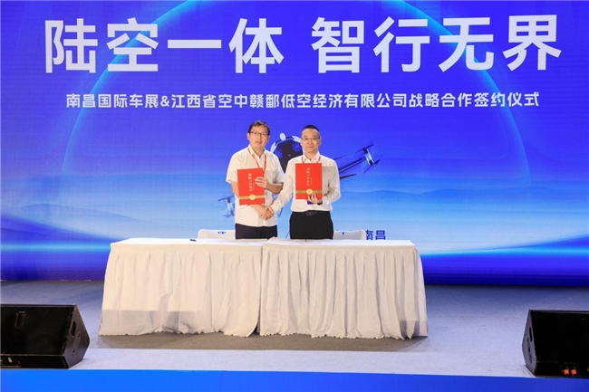 在汽车产业向智能化、网联化转型的大背景下,南昌国际车展也在不断探索创新,积极寻求跨界合作的新机遇。启动仪式现场,南昌国际车展与江西省空中赣鄱低空经济有限公司正式签署战略合作协议,标志着车展迈入全新的时代,本届车展与江西省空中赣鄱低空经济有限公司合作设立了江西首个“ 低空飞行专区”,eVTOL 飞行器真机也首次亮相车展。希望让大家看到未来出行和生活方式的更多可能性。