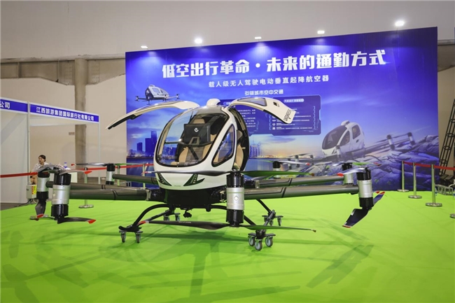 本届车展首次引入低空飞行专区,现场展出亿航EH216-S的无人驾驶载人航空器,同时这也是国内首款获得型号合格证(TC)、标准适航证(AC)和生产许可证(PC)、运营合格证(OC),目前唯一能够合法运营的无人驾驶载人航空器,现场观众可近距离一览未来出行方式的风采。