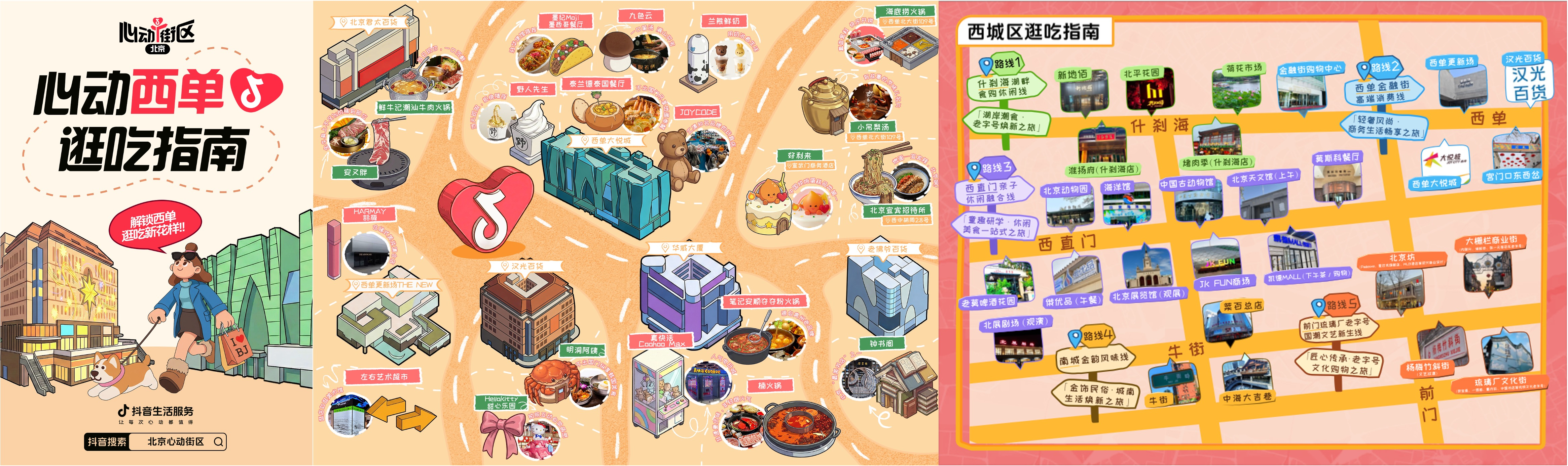 “心动西单”活动同步上线“线上街区”。抖音用户搜索“心动西单”话题词、点击活动banner即可跳转至详细页面获取西单逛吃地图、西单超值团购套餐和值得打卡的心动好店。据介绍,活动后续将特别邀请明星与抖音生活服务达人担任“一日店长”,通过“线上种草引流+线下沉浸体验”的多元模式,为年轻消费群体量身打造全方位的潮流消费攻略。