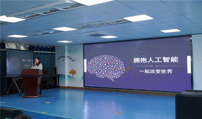随后的AI公益科普课上,阿尔法蛋科普培训师高为为以“拥抱人工智能,一起改变世界”为主题,为现场百余名英语、语文教师带来了一场既通俗易懂又富有启发的讲座。课堂上,高老师从人工智能的发展历程讲起,结合教育场景,生动阐释了AI技术如何助力个性化学习、赋能教师减负增效。