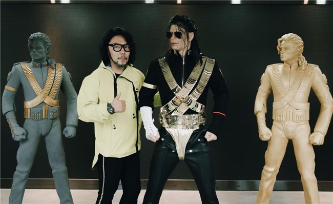 马勇与他设计的杰克逊雕像